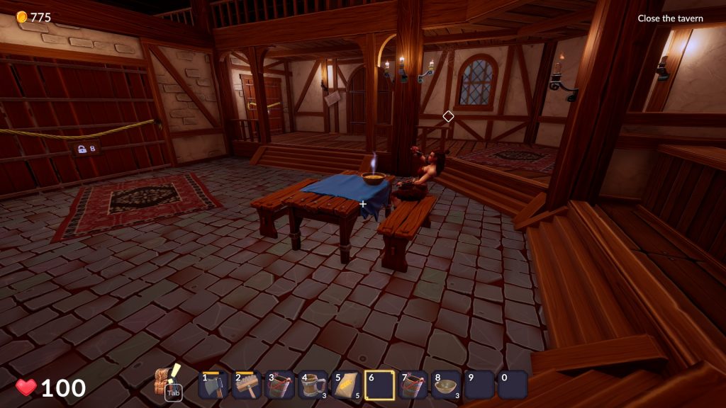 Fangen wir mal bei der Grafik an: Wir haben hier keinen 2D-Tavernen-Simulator, sondern 3D – und das nicht in der üblichen „Schrott“-Grafik, wie man es von anderen Simulatoren gewohnt ist. Stattdessen gibt es hier eine wirklich coole Grafik im High-Poly- oder fast schon comichaften Stil. Für mich ist das unfassbar ansprechend, und bisher konnte ich keinerlei Grafikbugs feststellen – ein klarer Pluspunkt.