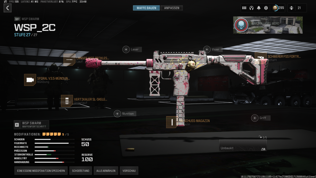 Die WSP Swarm schaltet ihr ebenfalls beim Level-Prozess frei. Für mich gehörte sie von Anfang an zu den liebsten MPs in MW3, weil sie so handlich ist und schnell feuert. Und auch auf wzstats.gg gilt sie als eine der besten Picks.
