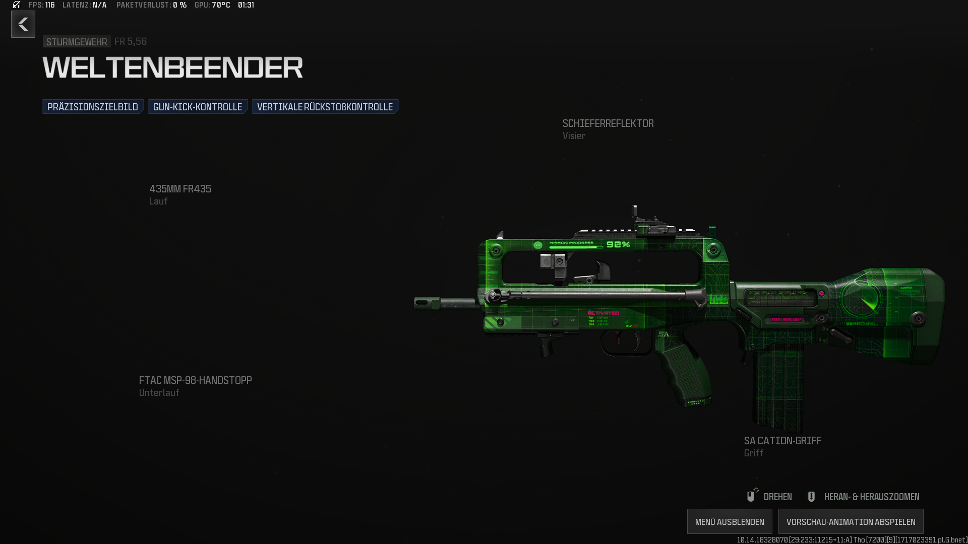Zuletzt schaltet ihr die Meisterbelohnung frei: Den Weltenbeender-Bauplan für die FR 5,56: