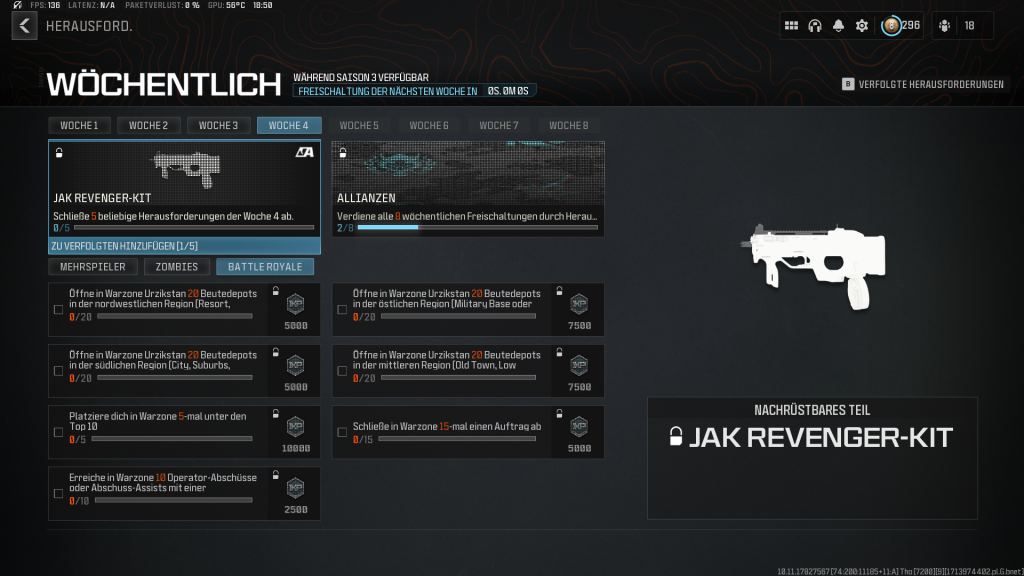 - Schließe in Warzone 15-mal einen Auftrag ab, 5.000 XP