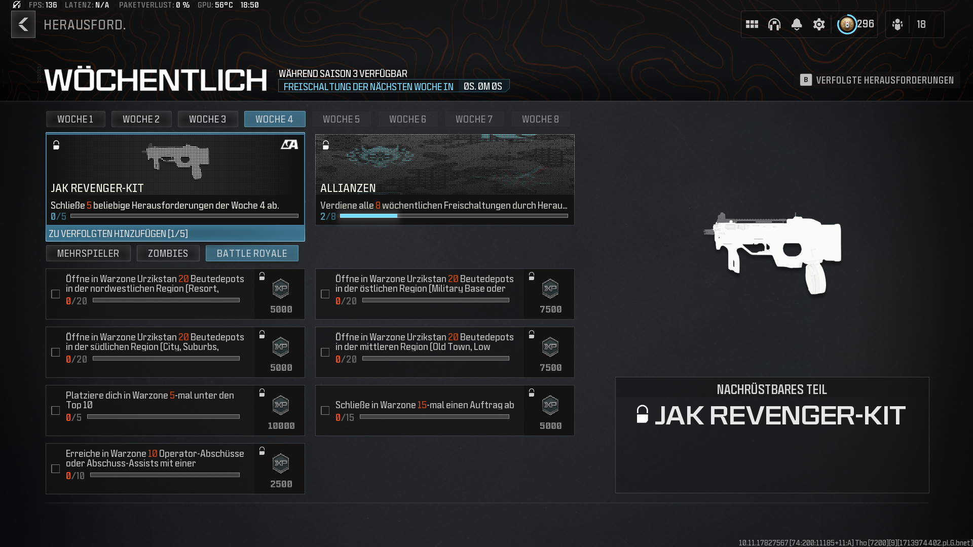 Auch in Season 3 von Call of Duty: Modern Warfare 3 gibt es wieder wöchentliche Aufgaben, mit denen ihr Aftermarket-Teile und den „Allianzen“-Waffenskin freischaltet. In Woche 4 erspielt ihr das JAK Revenger Kit für die BP50. Welche Aufgaben die Woche beinhaltet, erfahrt ihr hier.