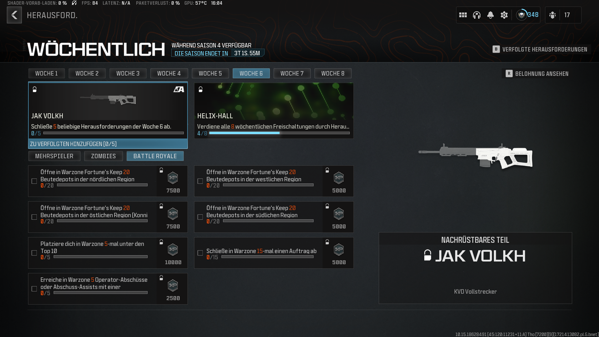 In Woche 6 der Herausforderungen bekommt ihr den JAK Volkh für die KV Inhibitor. Datei handelt es sich um eine Schaft- und Gehäusemodifikation, die der Waffe ermöglicht, zweier Bursts abzufeuern, die sehr genau sind.
