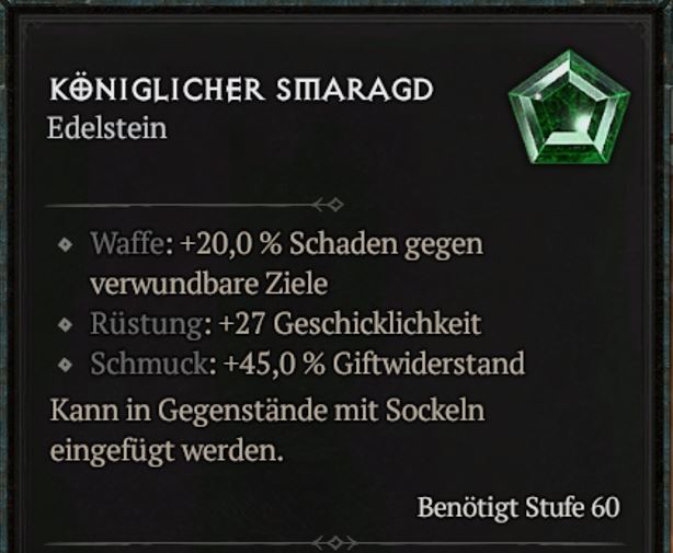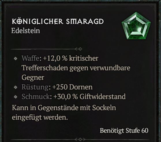 An den Bildern seht ihr, dass Amethyste, Smaragde, Saphire und Topase jetzt primäre Werte bieten, wenn sie ausgerüstet werden, und erhöhen Stärke, Geschicklichkeit, Willenskraft bzw. Intelligenz. Auch wurden fast alle Edelstein-Effekte verbessert.