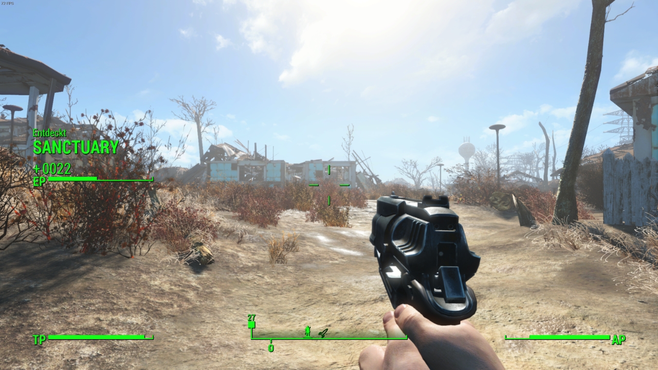 Besonders zu Beginn des Spiels ist Munition recht knapp. Versucht also, eure Gegner möglichst immer zu looten und schaut euch im Ödland nach Behältern um. Es gibt außerdem Perks im Spiel, die dafür sorgen, dass ihr aus den Behältern mehr Munition erhaltet. Nehmt immer verschiedene Arten von Muni mit, falls euch eine mal ausgeht und ihr auf eine andere Waffe wechseln müsst. Anders als in Fallout 76 wiegt Muni in Fallout 4 nichts. Sammelt also alles ein, was ihr findet – auch Raketen. Man weiß ja nie.