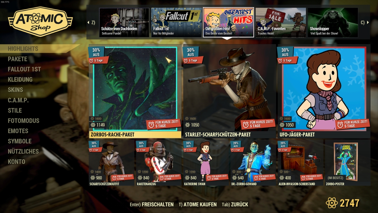 Auch im Shop von Fallout 76 gibt es verschiedene Items und Bundles passend zum Alien-Thema. Aktuell könnt ihr in etwa das UFO-Jäger-Paket erwerben, das unter anderem Sternenhimmel-Böden, einen Alien-Rucksack-Skin, einen coolen Alien-Invasion-Schießstand und einen UFO-Schirm-Gartentisch enthält.