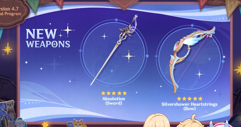 Passend zu den neuen Charakteren gibt es auch die dazugehörigen neuen 5-Sterne-Waffen.