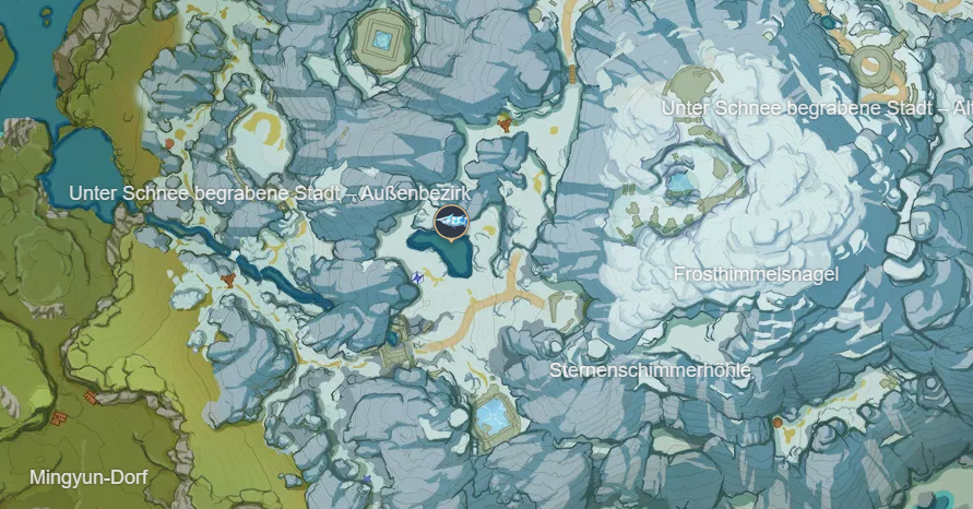 Der Schneekönig gehört wohl mit zu den seltensten Fischen in ganz Teyvat, denn ihr könnt ihn nur an einem einzigen Ort fangen, und zwar in Dragonspine.