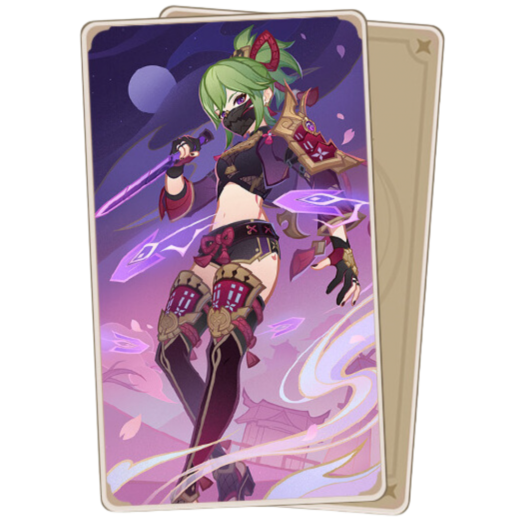 Ihre Talentkarte kostet genauso viel wie ihre Ultimative Fähigkeit, bringt jedoch einen zusätzlichen Vorteil: Wenn euer aktiver Charakter Kuki Shinobu ist, rüstet diese Karte aus. Nachdem Kuki Shinobu diese Karte ausgerüstet hat, benutzt ihr sofort ihre ultimative Fähigkeit.