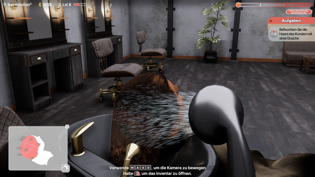 Das Dekorieren der Salons hat mir einerseits Spaß gemacht, andererseits hat es mir gefehlt, Deko-Elemente auf anderen Elementen platzieren zu können. Die Mechaniken, wie in etwa Haare waschen, kämmen, föhnen und färben, fand ich cool, allerdings hatte ich nach 6–7 Tagen im Spiel meistens schon „genug“, es wurde repetitiv und fühlte sich fast wie richtige Arbeit an. Zum Vergleich: In anderen Simulatoren verbringe ich problemlos 8+ Stunden am Stück. Es gibt kaum Interaktionen mit Kundinnen und Kunden, es gibt nur vereinzelt „besondere Kunden“, mit denen ein Dialog in Form eines Textfeldes stattfindet.