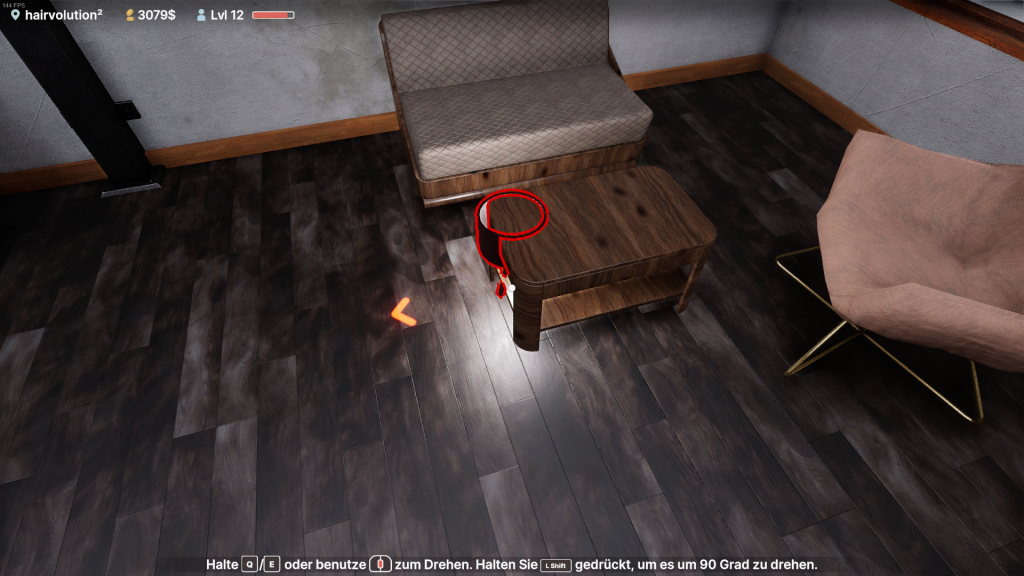 Das Prinzip von dem Hairdresser Simulator besteht darin, einen Friseursalon aufzuräumen, zu renovieren und passend einzurichten. Dafür gibt es ein Startbudget und die Empfehlung für ein bestimmtes Möbel-Set. Nach einem Tutorial werden auch schon die ersten Kundinnen und Kunden auf uns losgelassen.